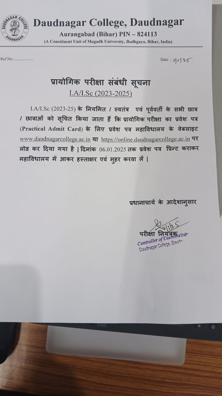 NOTICE REGARDING FOR INTERMEDIATE PRACTICAL ADMIT CARD (2023-25)
