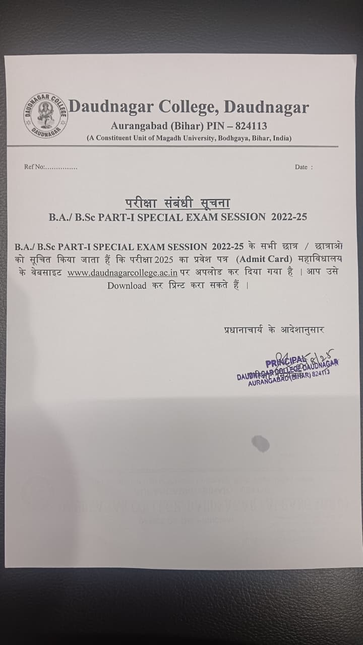 NOTICE REGARDING PART-I SPECIAL EXAM SESSION 2022-25